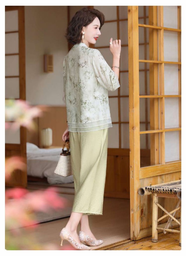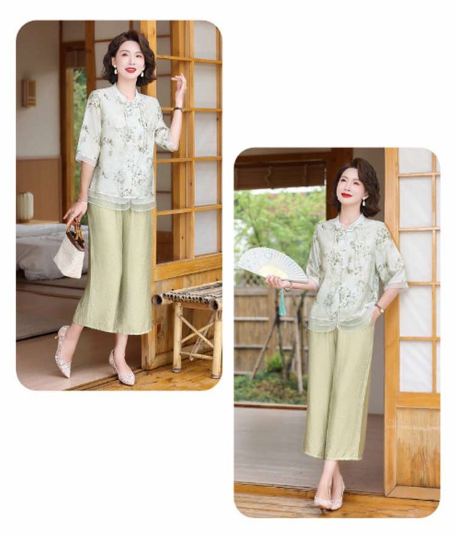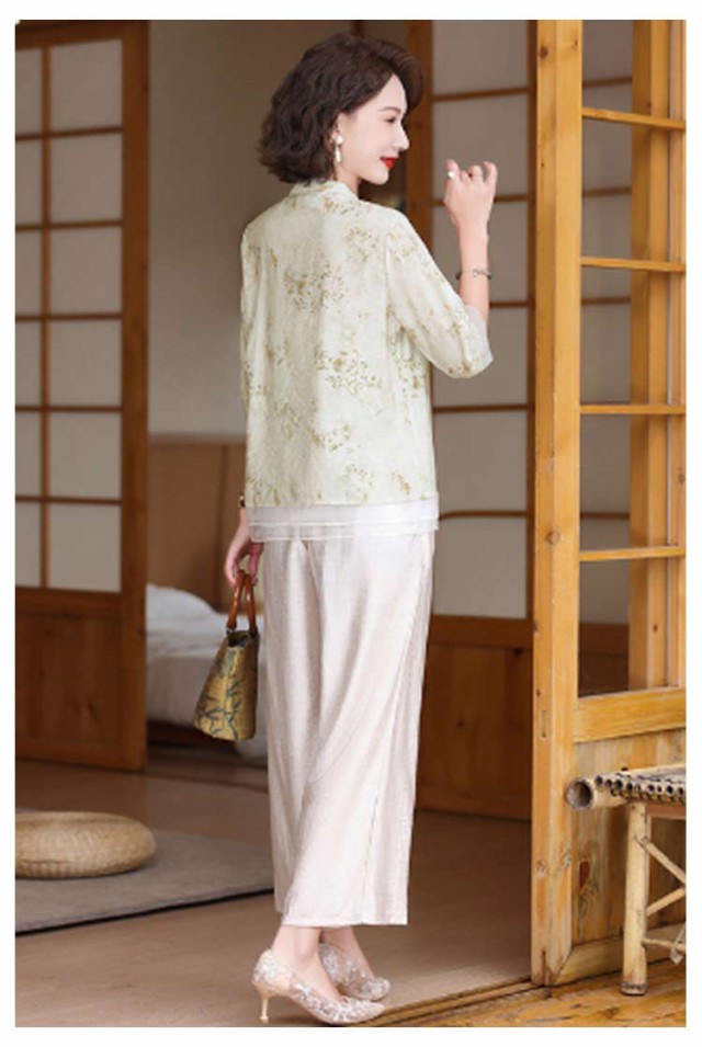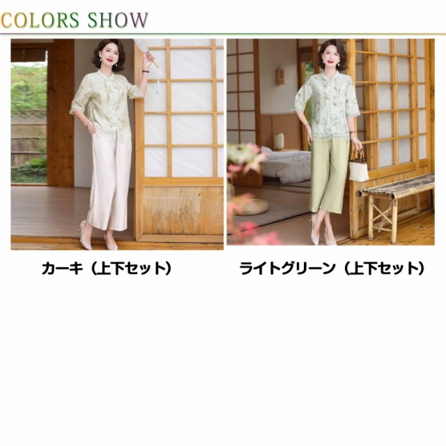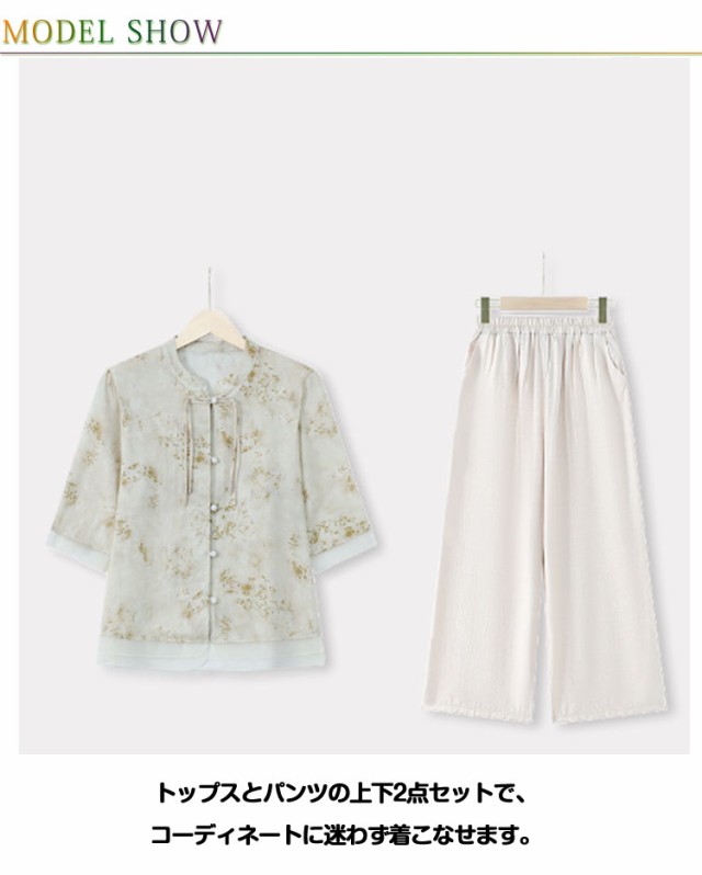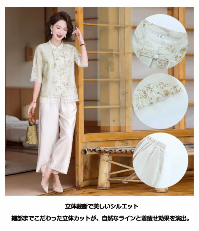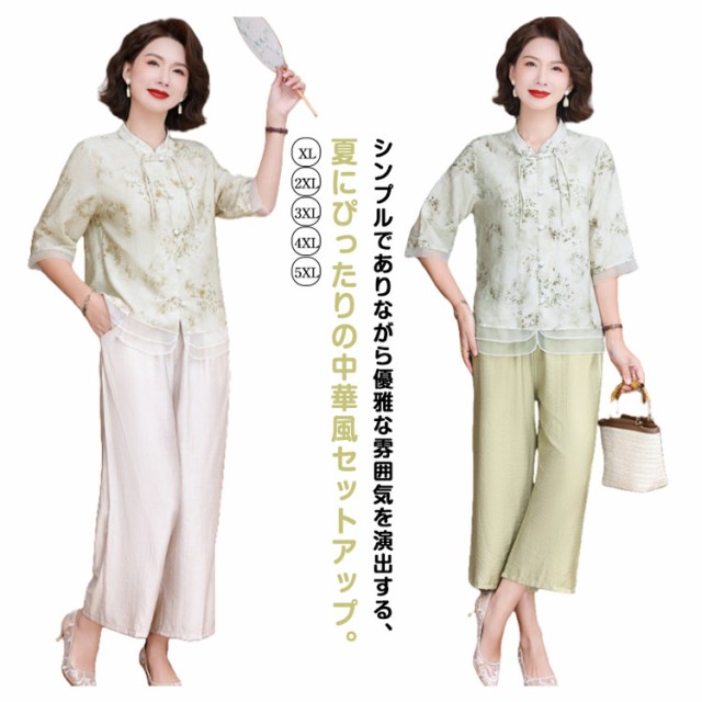 レディース セットアップ 半袖 大きいサイズ トップス ブラウス ワイドパンツ 上下セット おしゃれ セットアップ チャイナ風 カジュアル パンツスーツ シニア向け ママ 通勤 母の日 ギフト