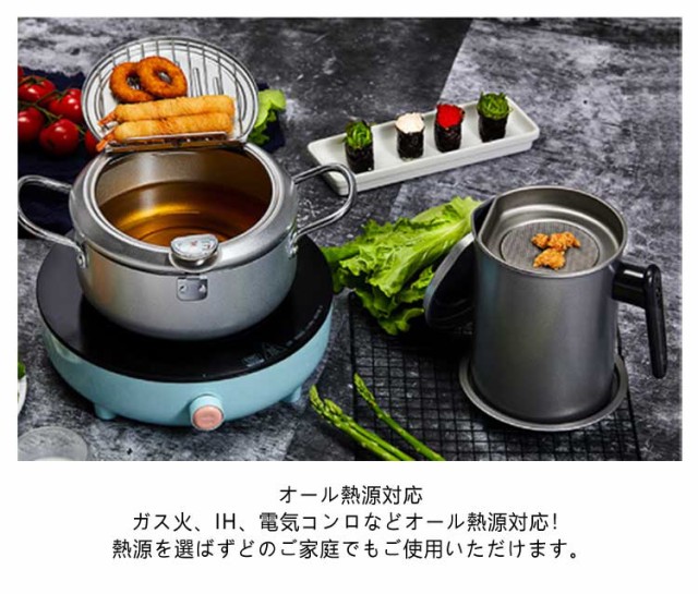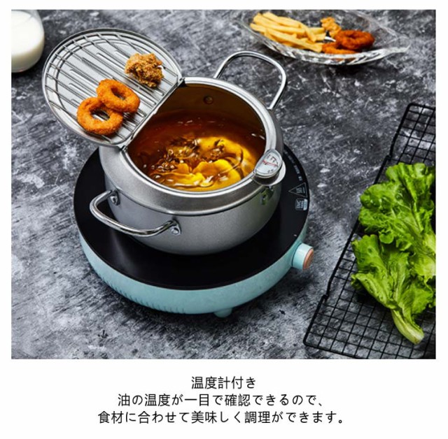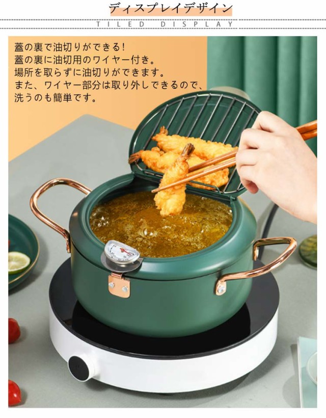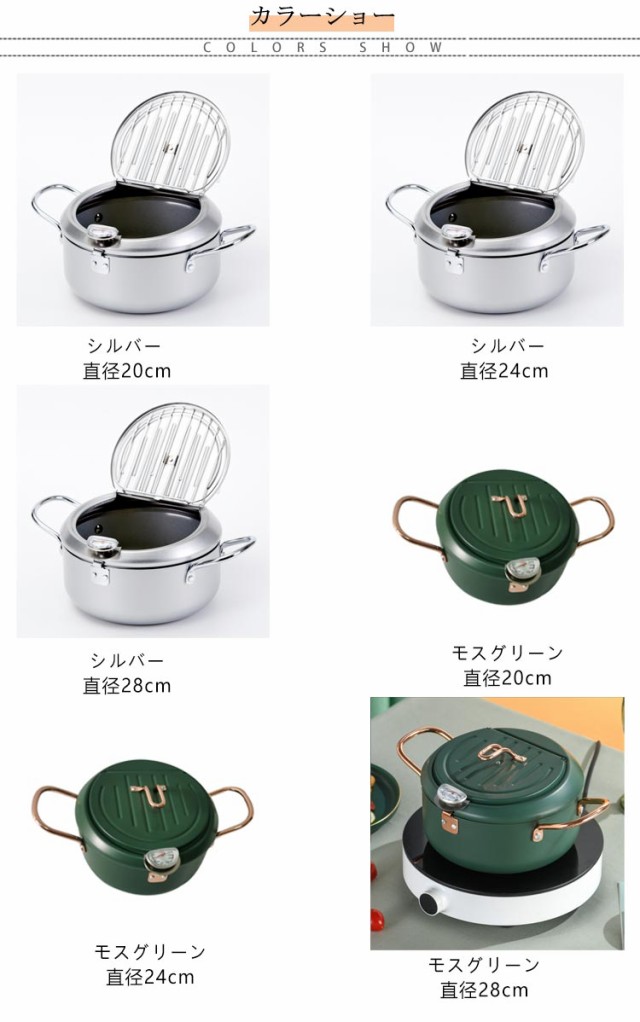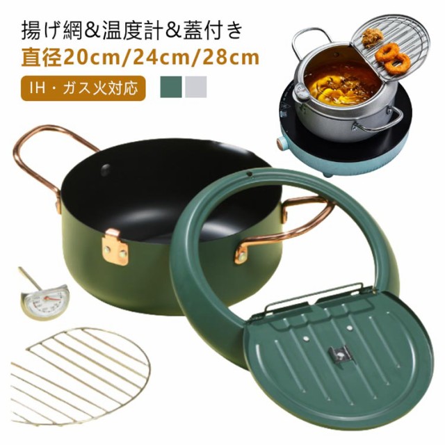 ガス火対応 24cm 天ぷら鍋 温度計付き 20cm 天ぷら 揚げ鍋 IH対応 両手鍋 小さい 小型 天ぷら鍋 鉄 製 蓋付き 揚げ物鍋 揚げ物 調理器具 28cm 天ぷら用鍋 フライヤー なべ お鍋 アミ付き 丸型 温度計 天婦羅鍋 コンパクト フライ 油はね防止 シンプル