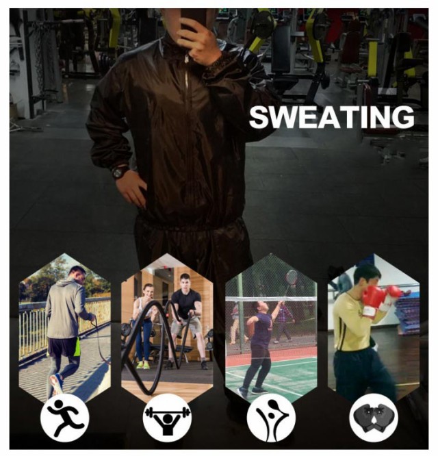 | ・汗をかくためのサウナスーツ上下セット ・アルミが体温を閉じ込める! ・サウナ効果で大量発汗! | |