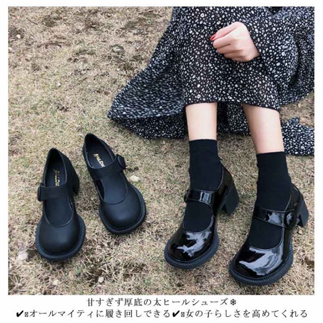 厚底パンプス メリージェーン レディース パンプス ローファー シューズ クラシック バックル ストラップ ベルト 定番 ラウンドトゥ 太ヒール 厚底 厚底ローファー ラウンドトゥ 韓国ファッション シンプル