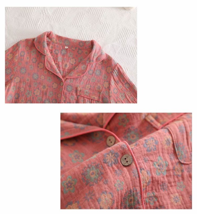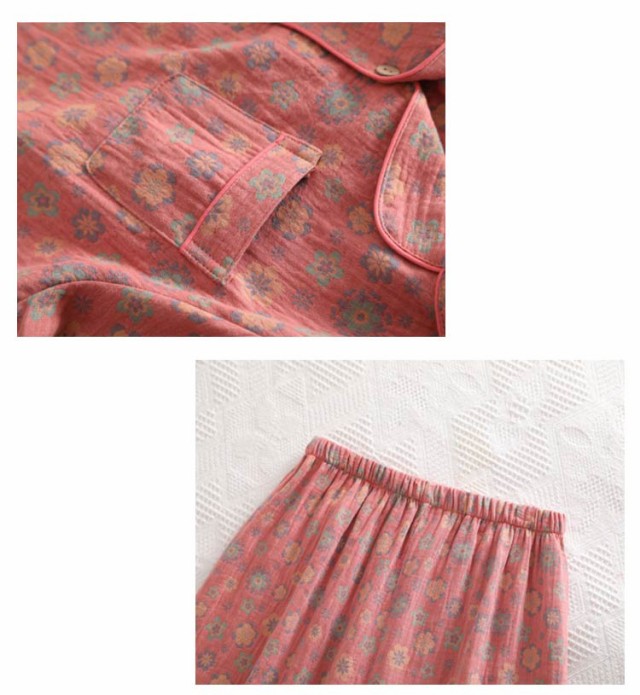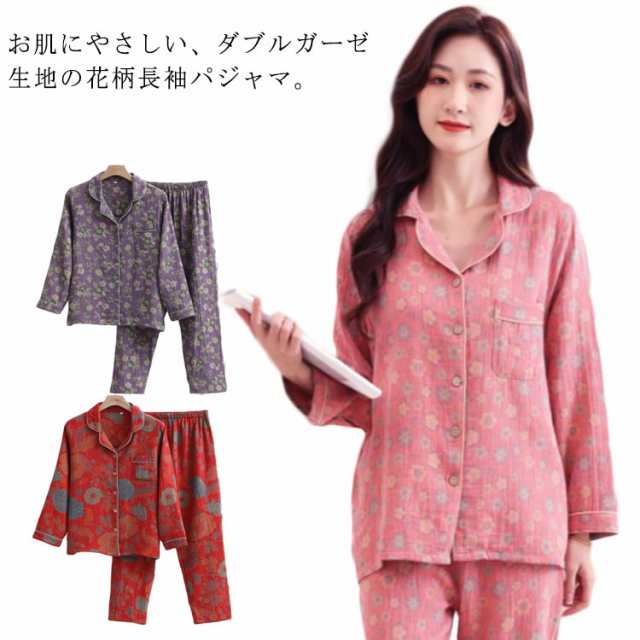 部屋着 Wガーゼ 花柄 長袖 秋冬 ガーゼ ロングパンツ 上下セット 二重ガーゼ 婦人 ルームウェア 長袖 セットアップ レディース ダブル シニアファッション 長ズボン 大人可愛い おしゃれ 100%綿 ナチュラル 春夏 前開き 総柄 50代 60代 70代 80代 敬老の日