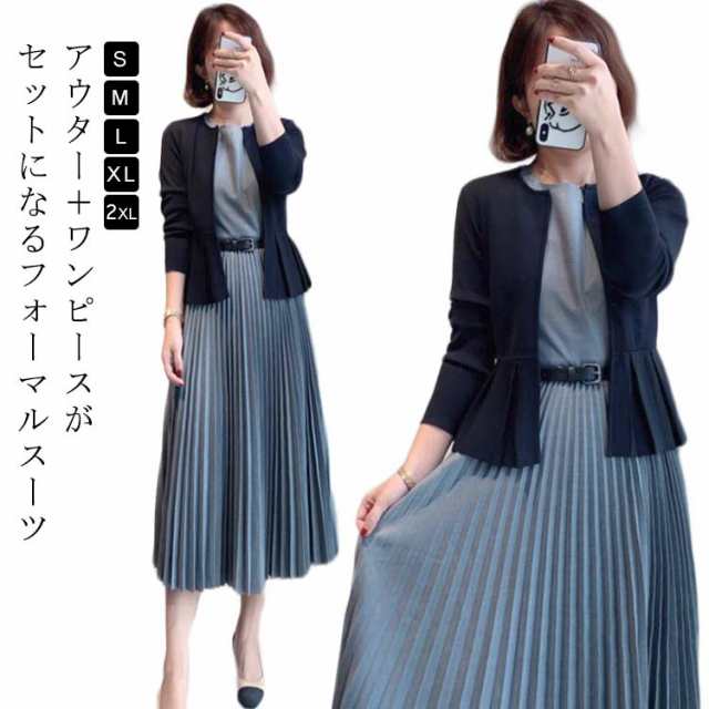 フォーマルスーツ 上品 ワンピーススーツ 2点セット ノーカラージャケット ママスーツ 袖なし プリーツワンピース 長袖 フォーマルスーツ レディース 結婚式 母親 入学式 卒業式 ノースリーブ セットアップ 七五三 お宮参り