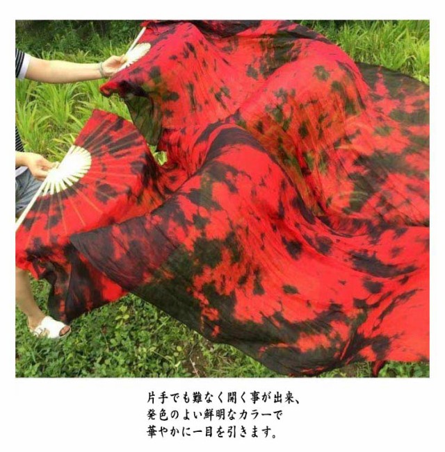 シルク アクセサリー 2本セット ファンベール タイダイ柄 ベリーダンスファンベール タイダイ染め オレンジ グラデーション 右手用 ロング ベリーダンス 小道具 団扇 舞台 扇子 飾り ファンベール ダンス衣装 演出 左手用 レッド 2本セット ロイヤルブルー パープル