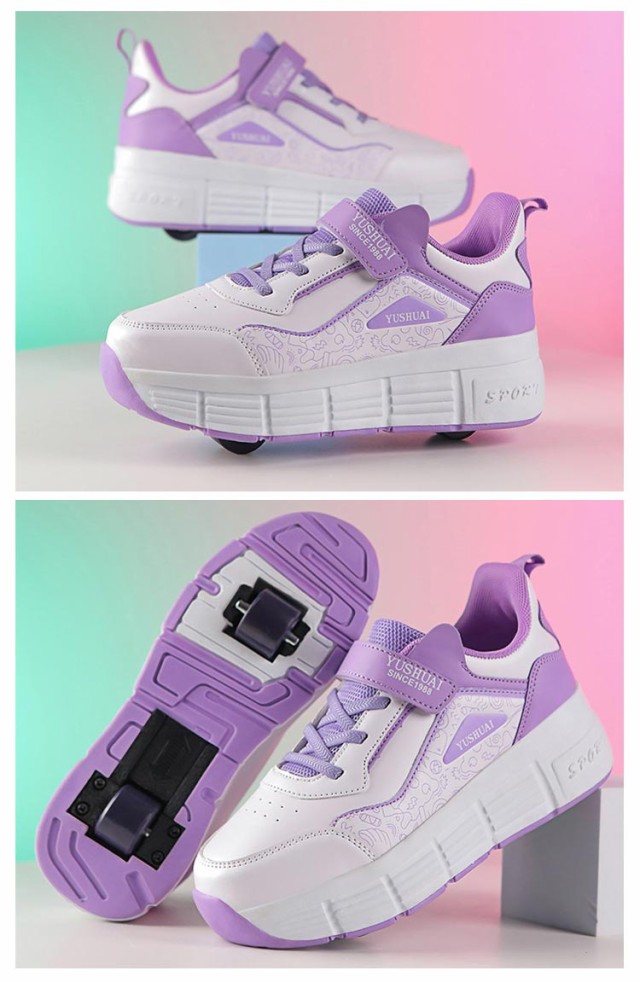| 【20.5-25.5cm】【大人/子供兼用】【2輪式】 大人気ローラーシューズ 輪がPU材料で高弾性、磨耗が低い特性があり、自由に移動できます。 靴の底がTPRの材料で作られて、丈夫そして滑り止めの高い安全性がもつ。 | |
