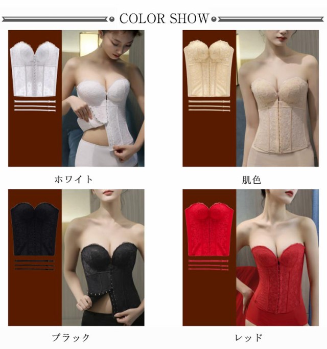 | ウエディングスタイルを美しく演出してくれるインナー レースデザインを採用して、上品で綺麗なデザイン、大人の色気を引き出します。 両サイドはポーンがしっかりとサポートし、理想的なボディラインを作り出します。 フロントホックで上がパカパカせず、谷間メイクの同時に安定感もプラス! ストライプが付き、幅広シーンで大活躍する。 バストアップとウエストの引き締めで、より美しいボディラインを実現します。 手の型のようなパッドによって、下からバストを優しく持ち上げ魅力的な谷間メイク。 ドレス用ランジェリーで衣装合わせや前撮り時等におすすめのドレスインナーです。 | |