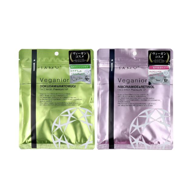 フェイスマスク アイサム ヴィーガニア フェイスマスク プレミアム 10枚入 StayFree ドクダミ&ハトムギ ナイアシンアミド&レチノール ヴィーガンコスメ 日本製 顔パック 単品