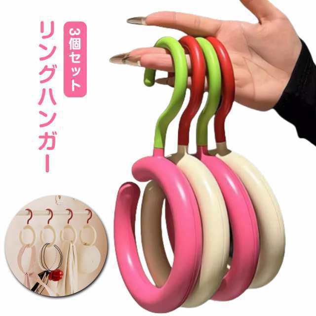 小物 円形 バッグ スカーフハンガー 【3個セット】リングハンガー 鞄 玄関 丸型 ネクタイ掛け 省スペース タンス収納 リング 丸ハンガー タオルハンガー フック インテリア シンプル かわいい