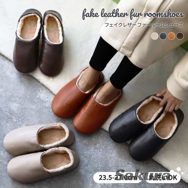 スリッパ レザータッチ ルームシューズ レディース メンズ 男女兼用 室内履き フェイク レザー ファー 北欧風 肌触り 滑り止め^bm1404^