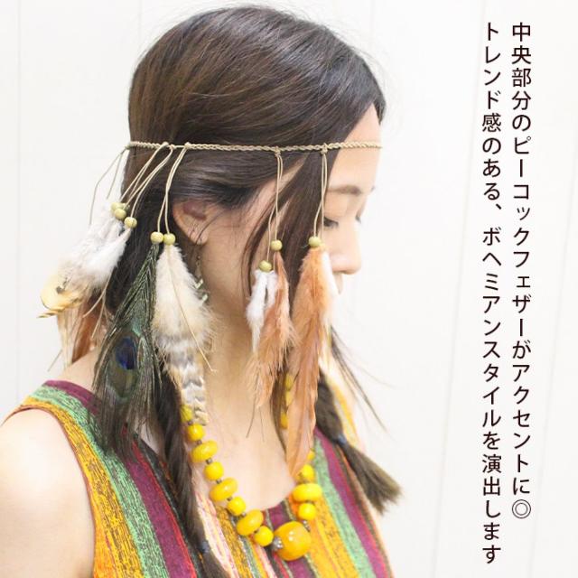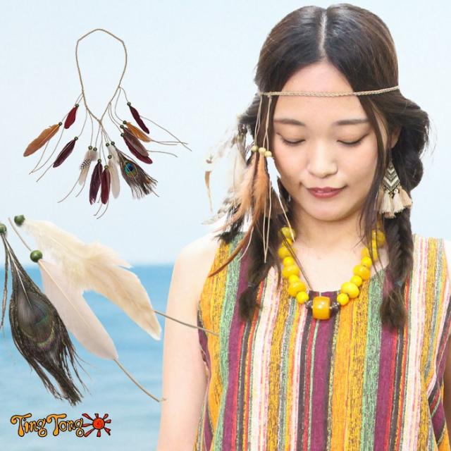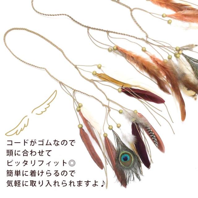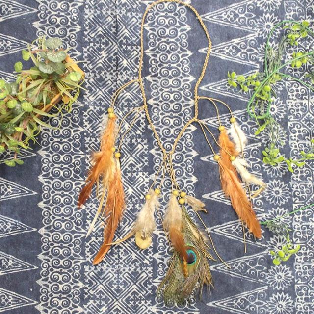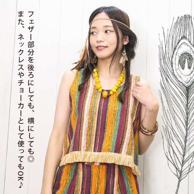 ヘッドバンド ヘアバンド ヘアアクセサリー ボヘミアン フォークロア !フェザーヒッピーバンド ヘアゴム ネックレス フェス 羽根 ハンドメイド