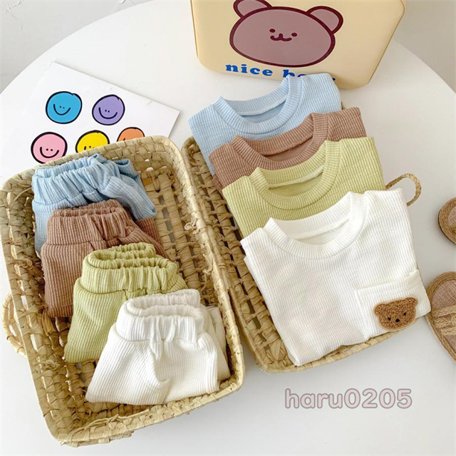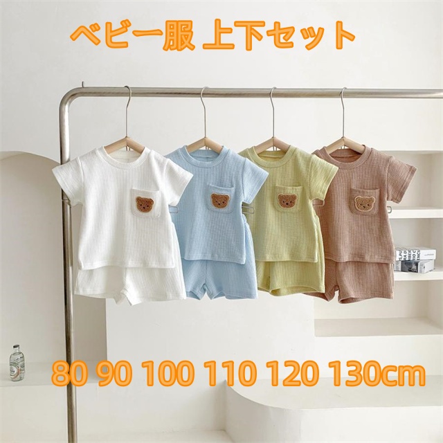 ベビー服 上下セット 半袖 赤ちゃん 子供服 夏服 綿 可愛い クマ 男の子 女の子 孫 キッズ セットアップ ルームウェア パジャマ 部屋着 通園 保育園80 90 100 110 120 130 夏新作 送料無料