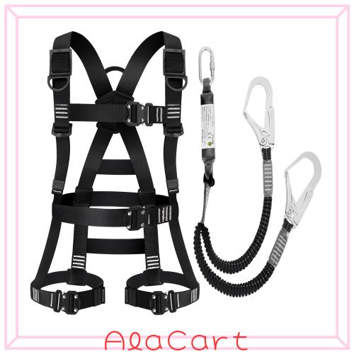 [lifning] 安全帯 フルハーネス ハーネス フルハーネス安全帯 新規格 セット 墜落制止用器具 サイズ調整可能 (ブラック)
