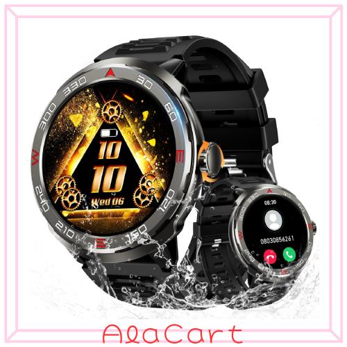 ◆商品名:スマートウォッチ 丸型 メンズ 1.39インチ大画面 軍用規格 スポーツウォッチ iphone対応 アンドロイド対応 通話機能付き 防水 防塵 耐衝