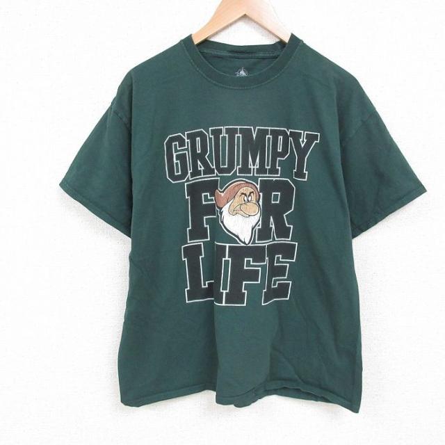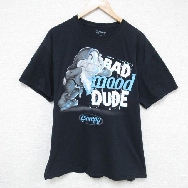 古着 半袖 Tシャツ メンズ ディズニー DISNEY クルーネック グレー リンガー 霜降り XLサイズ 中古 中古 古着