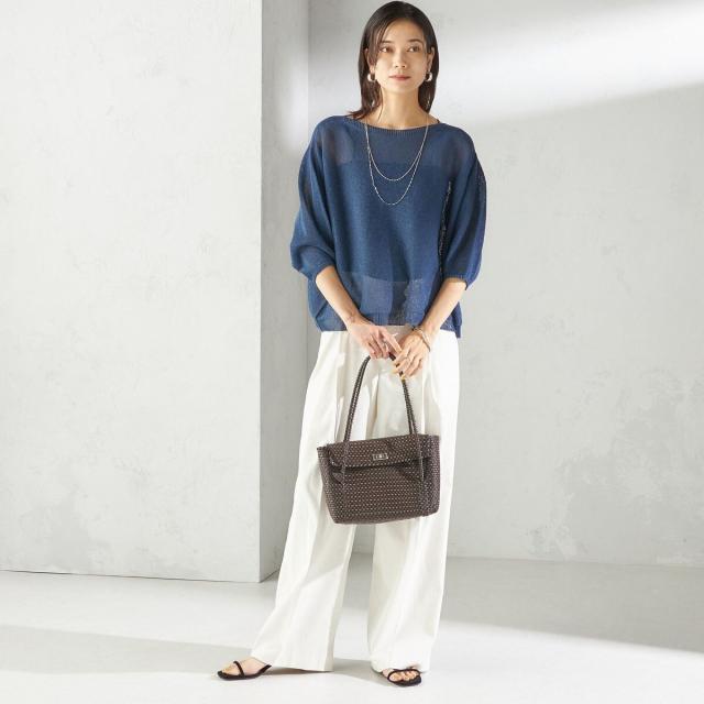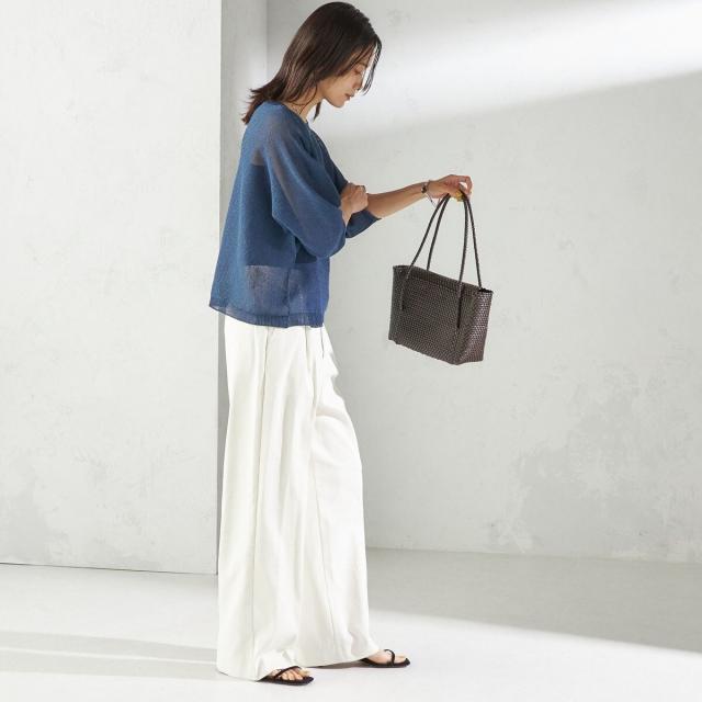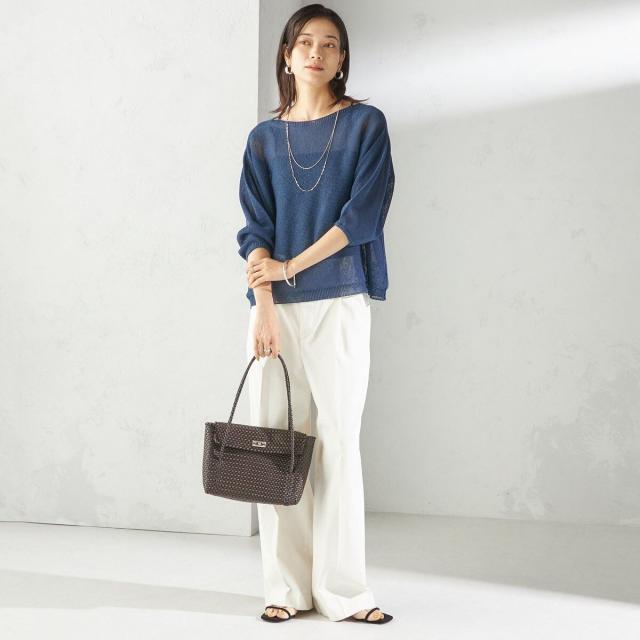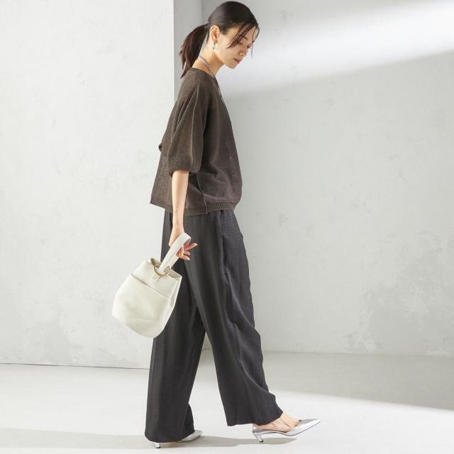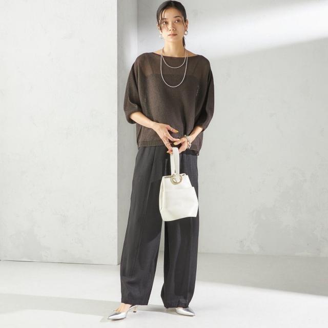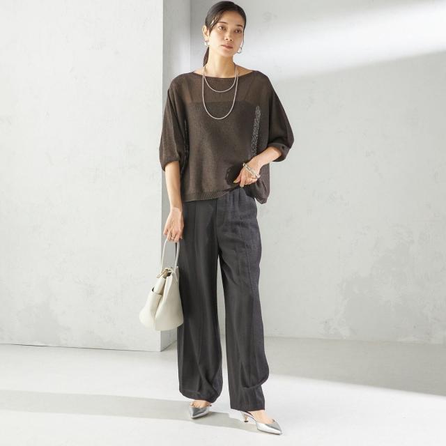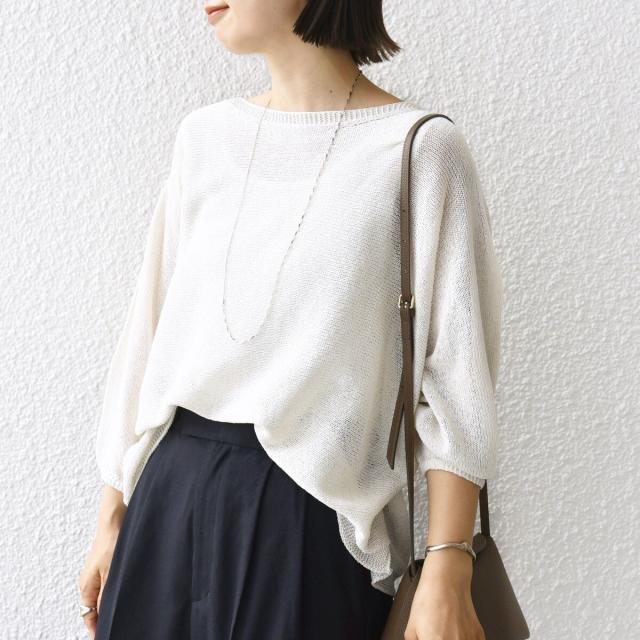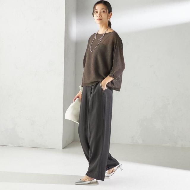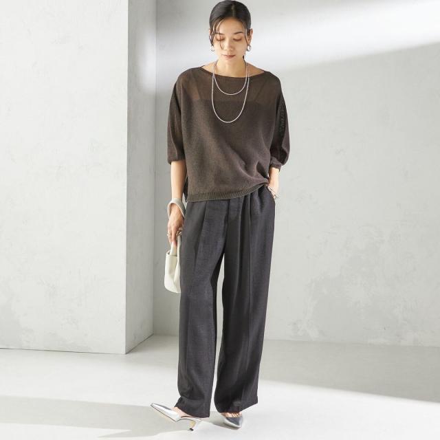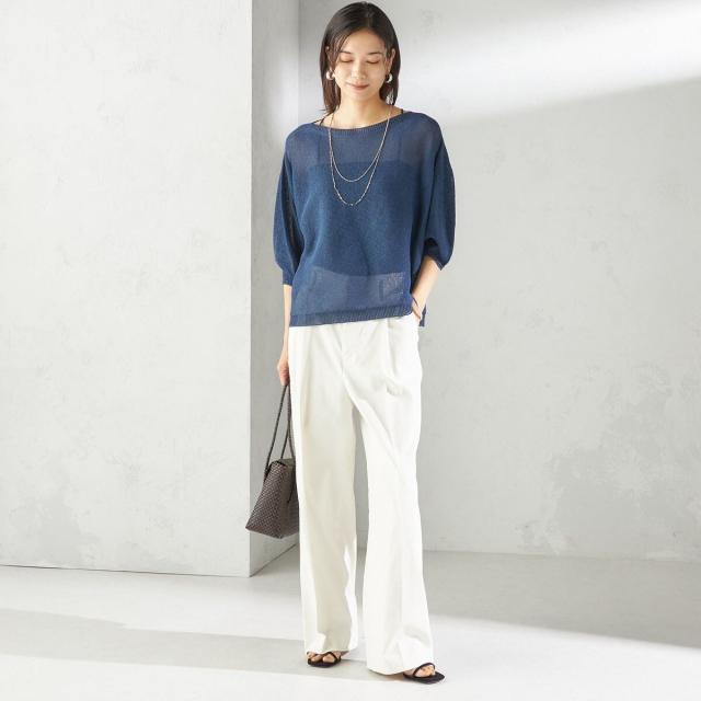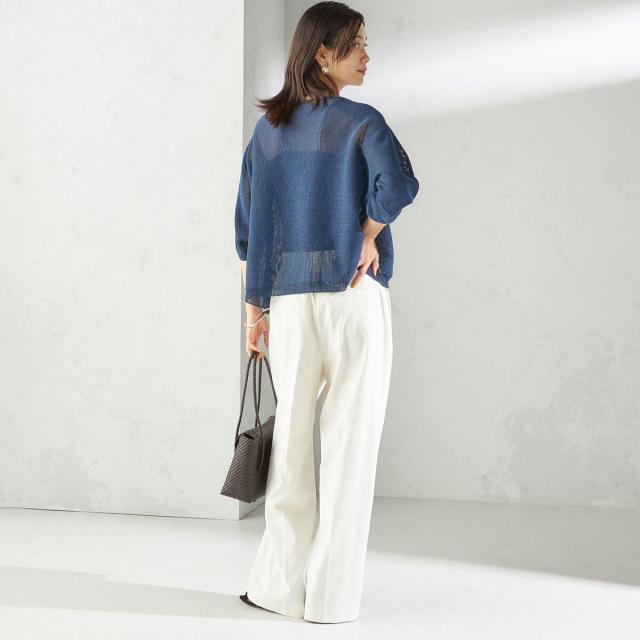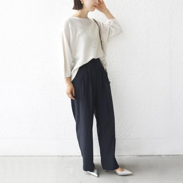 リラックス感のあるトップスには、きちんと感のあるパンツを合わせてバランス良く仕上げるのがおすすめ。
