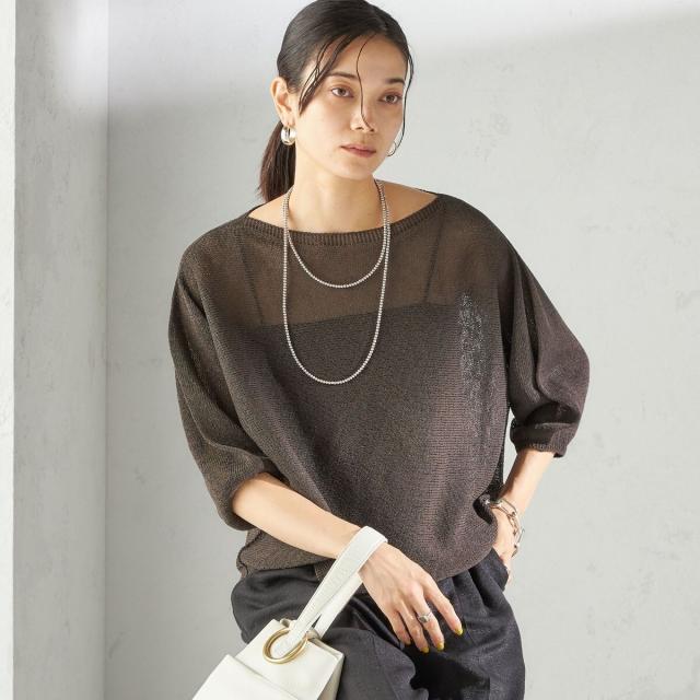 襟元の開きが顔まわりを華奢に見せ、小顔効果も◎