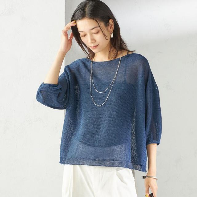 シップス(SHIPS)/〈手洗い可能〉ペーパー パフ スリーブ 半袖 ニット