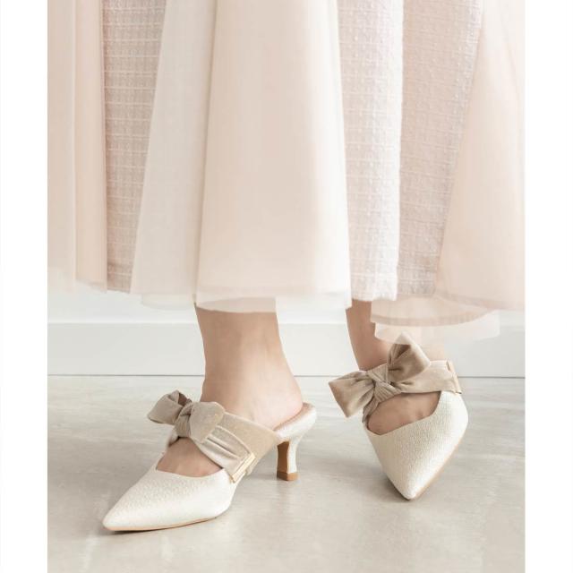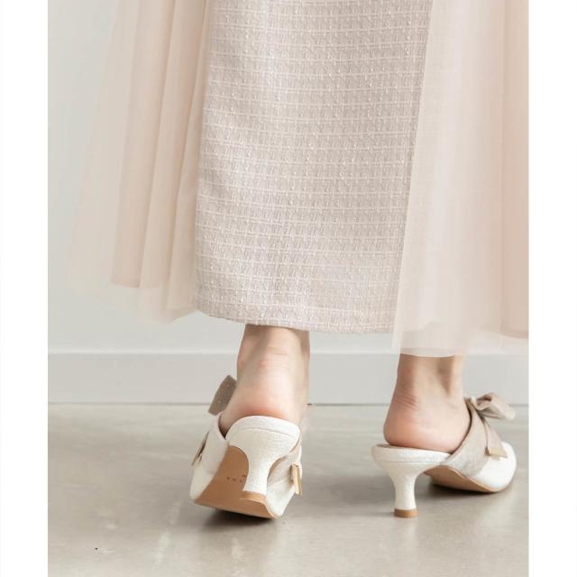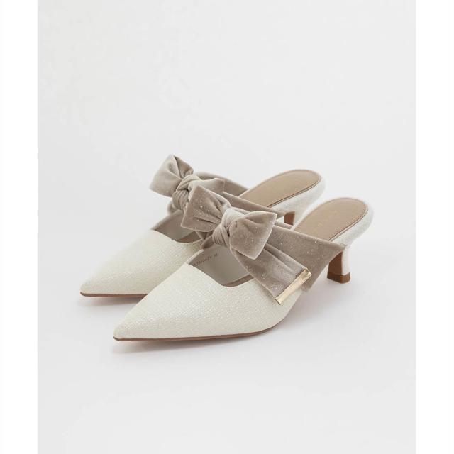 さりげなく輝くリボンが上品なミュールパンプス。