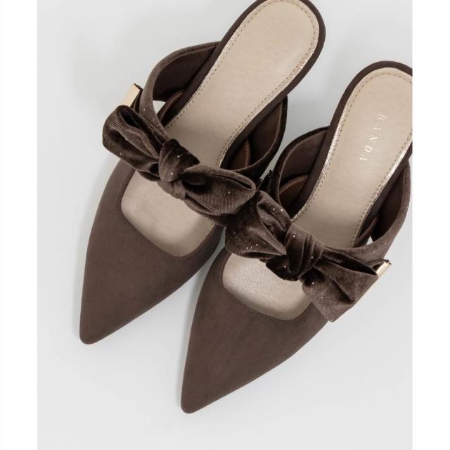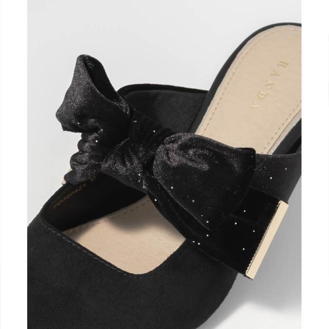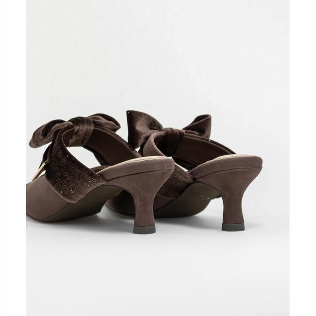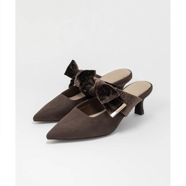【22.5−25.5】ビッグベロアリボンミュールパンプス