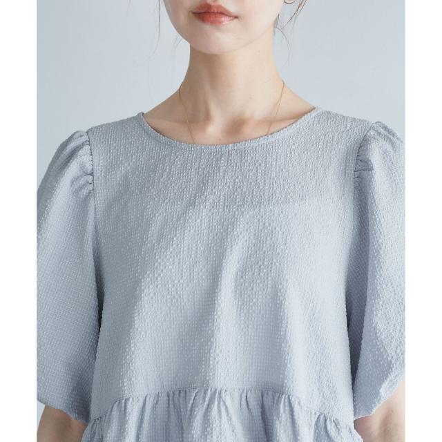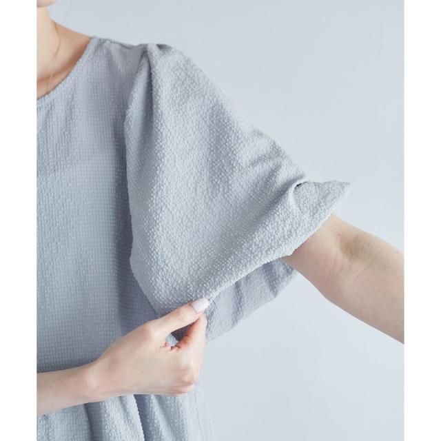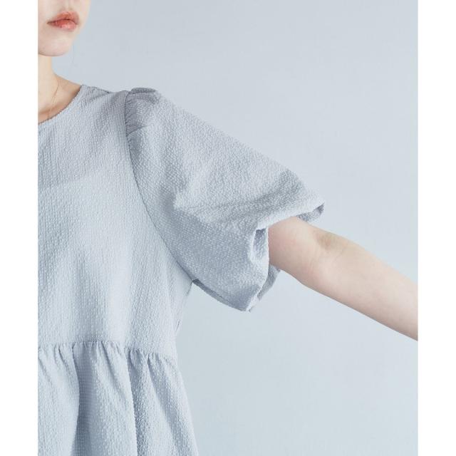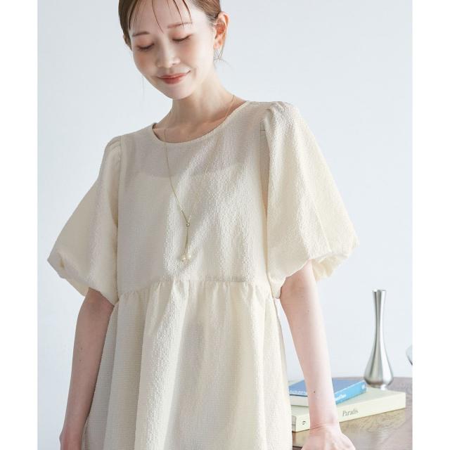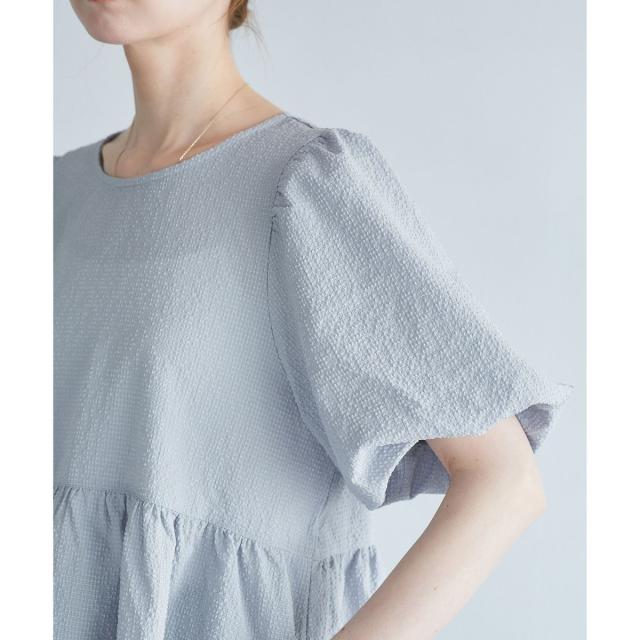 ・5分丈のバルーンスリーブブラウス。