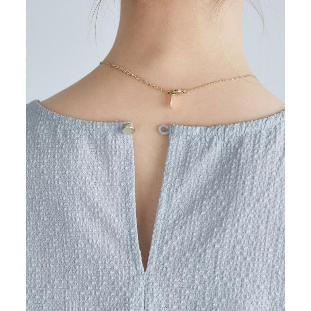 ・ボリュームのあるショートネックレスを合わせるのもおしゃれ。