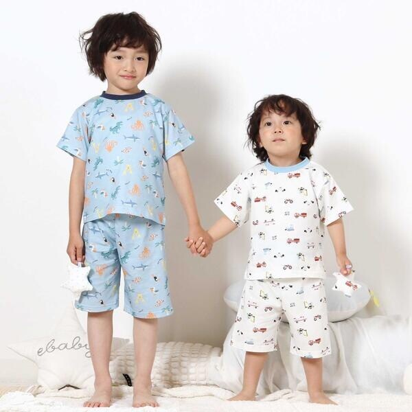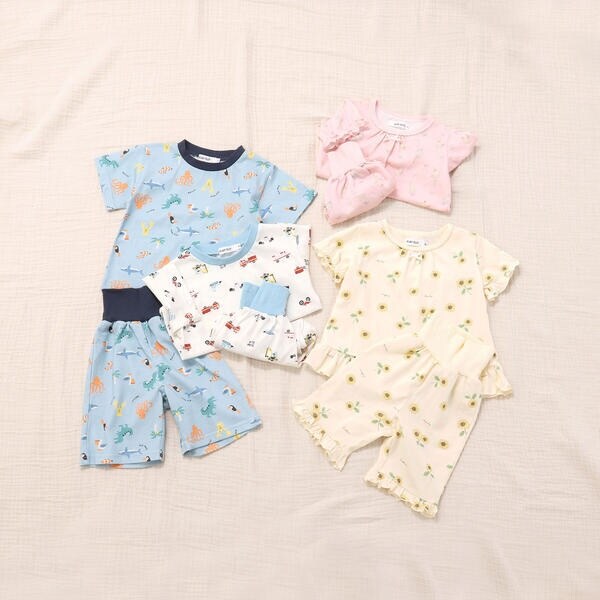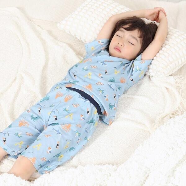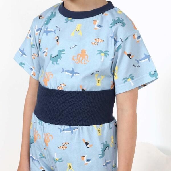 【スララク/腹巻き一体型/吸汗速乾】みんな快眠!半袖みんみんパジャマ 上下セット(80~130cm)