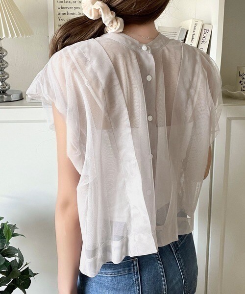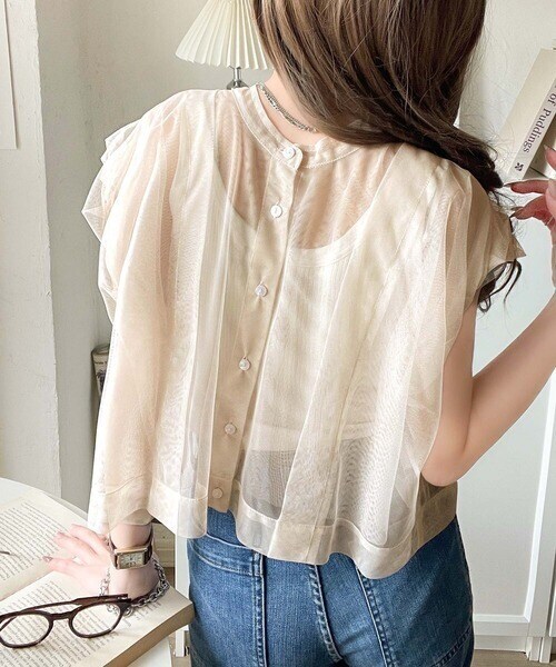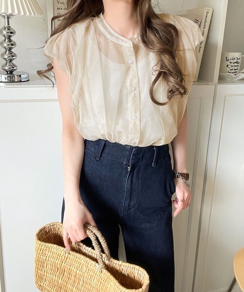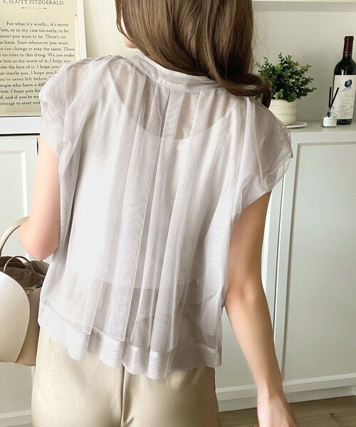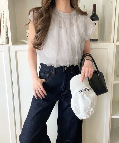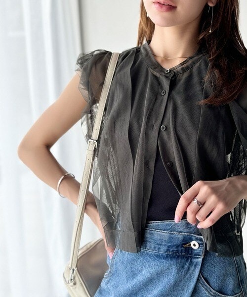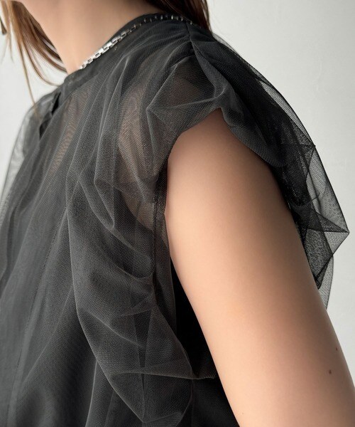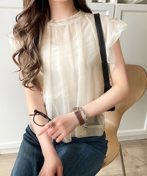 チュールの華やかさで1枚で女性らしさを引き立てるこのブラウスは、春夏コーデに1着は欲しいアイテム!