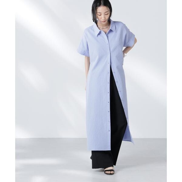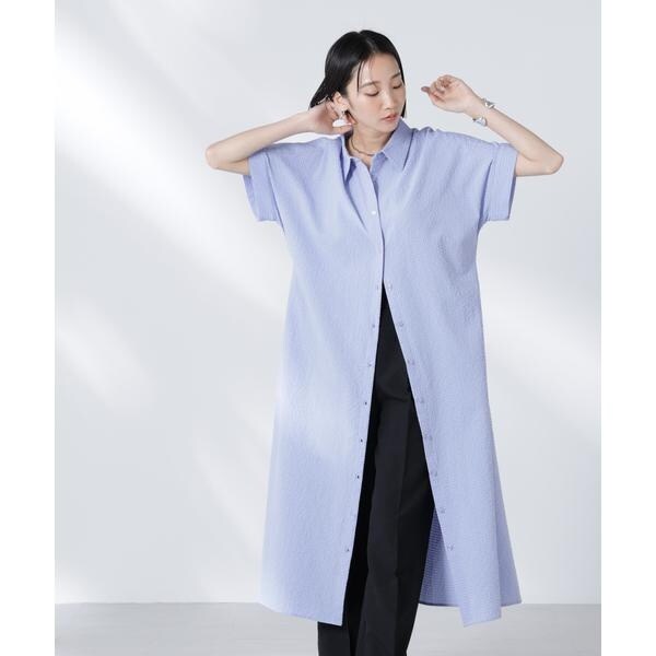 サッカードルマンスリーブシャツワンピース