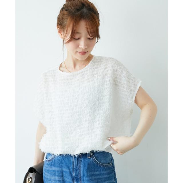 ルクールブラン(le.coeur blanc)/シアーフリンジフレンチスリーブブラウス