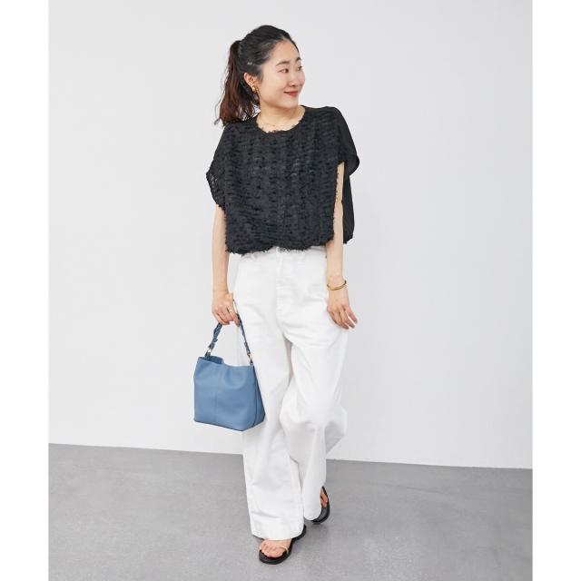 透け感のある軽やかな素材にフリンジをあしらい、スタイリングに抜け感と動きをプラスするブラウス。