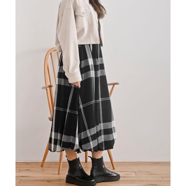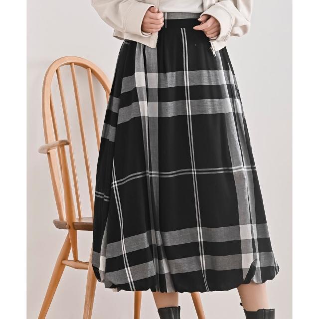 大人かわいいチェックのバルーンスカート