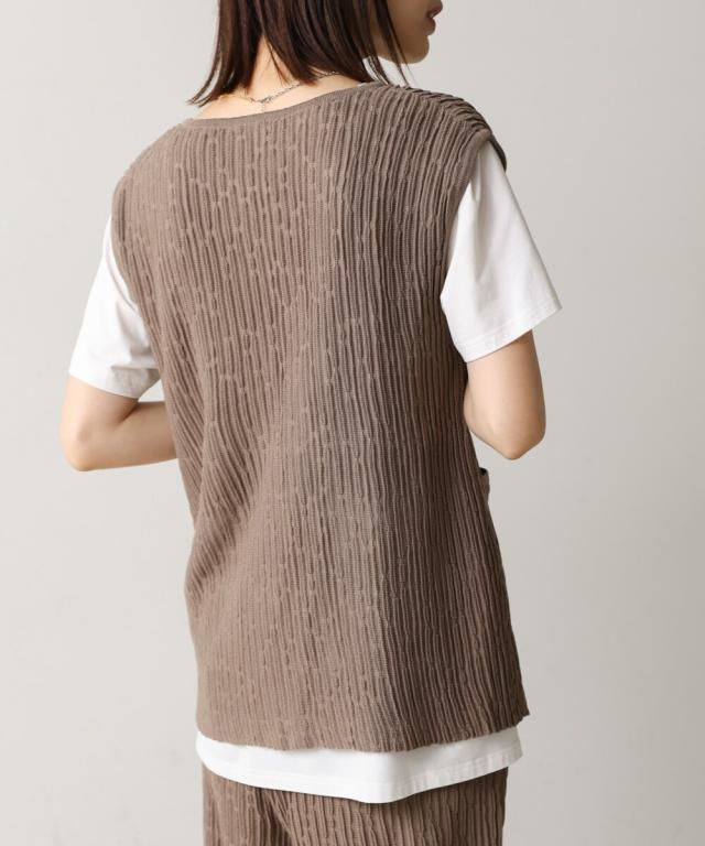 【セットアップ対応】ウェービーメッシュニットベスト