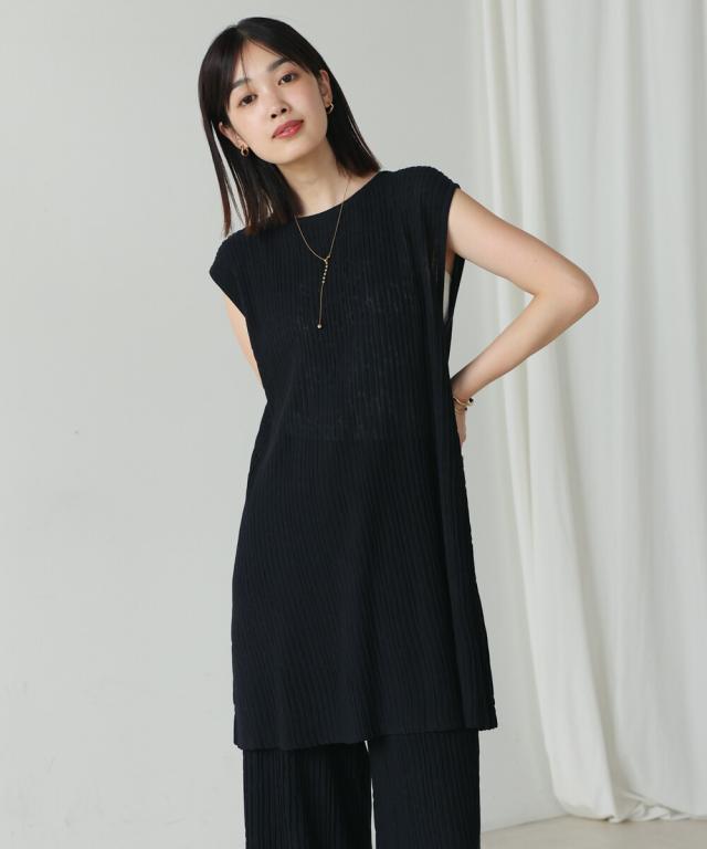 【セットアップ対応】前後2WAYウェービーメッシュニットチュニック