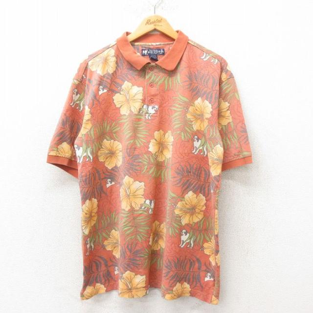 【商品名】 XL★古着 ビッグドッグス 半袖 ポロ シャツ メンズ 00年代 00s ハイビスカス 鹿の子 大きいサイズ オレンジ