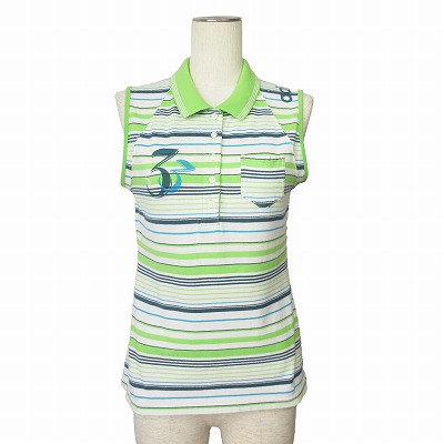 【中古】アディダス adidas ポロシャツ ノースリーブ ボーダー 40 黄緑 レディース