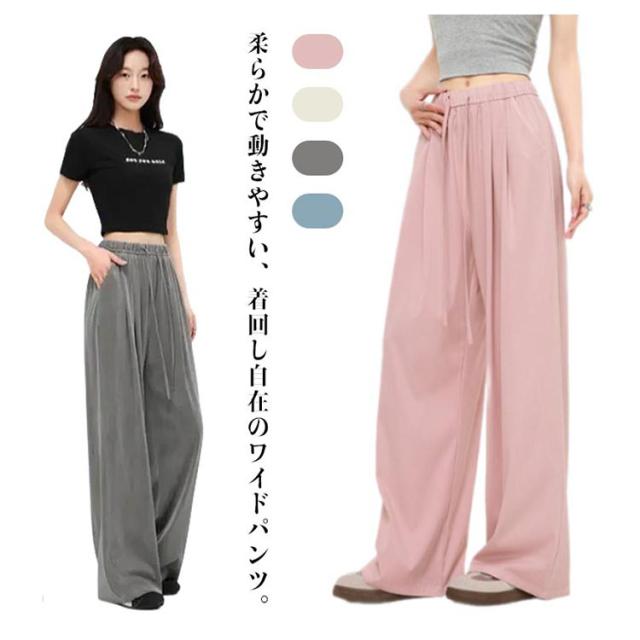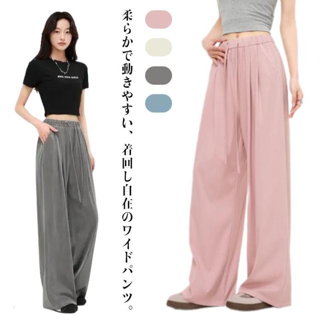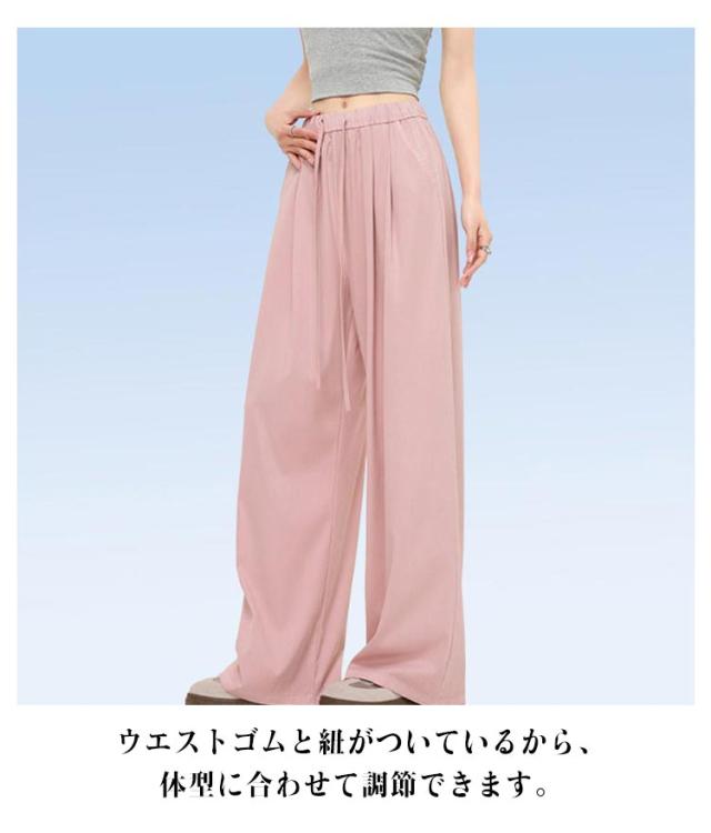 ワイドパンツ 涼感 パンツ レディース デニムパンツ ひんやり 夏 接触冷感 パンツ 涼しい ジーンズ 清涼感 ボトムス ウェストゴム ジーパン 薄手 長ズボン イージーパンツ ふんわり ゆったり リラックス