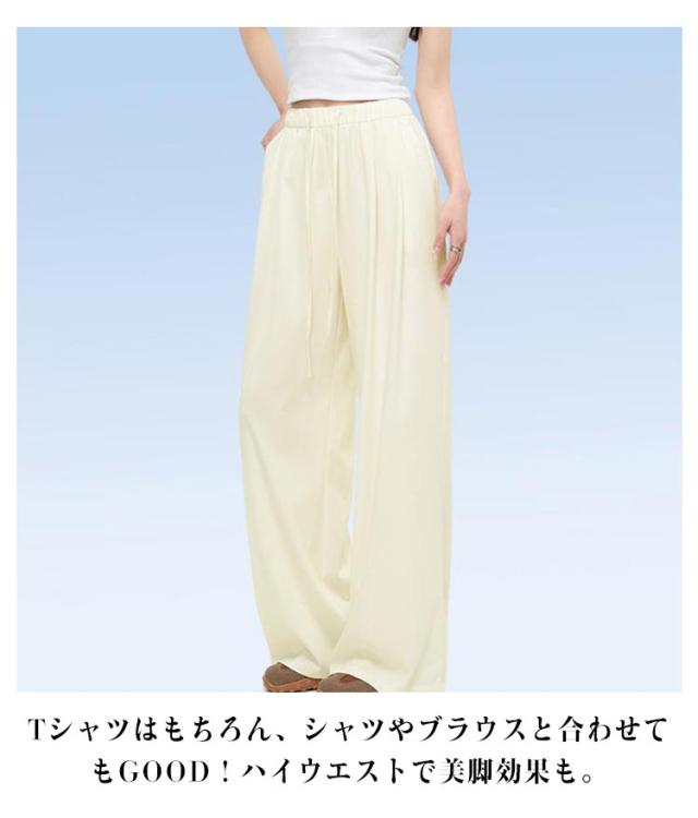 | 柔らかで動きやすい、着回し自在のワイドパンツ。 ウエストゴムと紐がついているから、体型に合わせて調節できます。 Tシャツはもちろん、シャツやブラウスと合わせてもGOOD!ハイウエストで美脚効果も。 ゆとりのあるシルエットだけど広がりすぎていないちょうどいいデザイン◎ 柔らかくて軽いから、春から夏、初秋にかけてピッタリ! | |