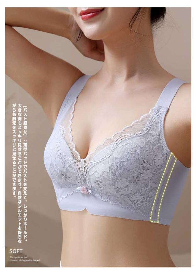 胸を小さく見せる ブラジャー 大きいサイズ 脇高 ブラ ノンワイヤー 軽い 通気性 メッシュ 幅広ストラップ 補正下着 薄型パッド レース 可愛い 脇肉 補正ブラ グラマー スリム 谷間 姿勢 補正 猫背 かわいい 着?せ ブラ 送料無料