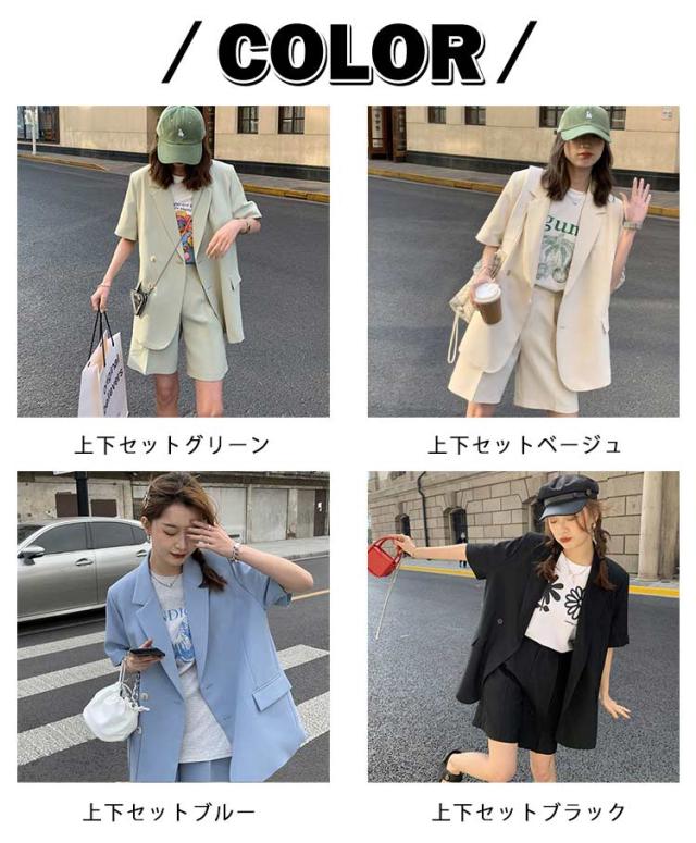 セットアップ スーツ レディース テーラードジャケット ショートパンツ セットアップ サマージャケット アウター 半袖ジャケット 短パン 上下セット ショート丈 春 夏 無地 きれいめ 通勤 オフィス カジュアルスーツ