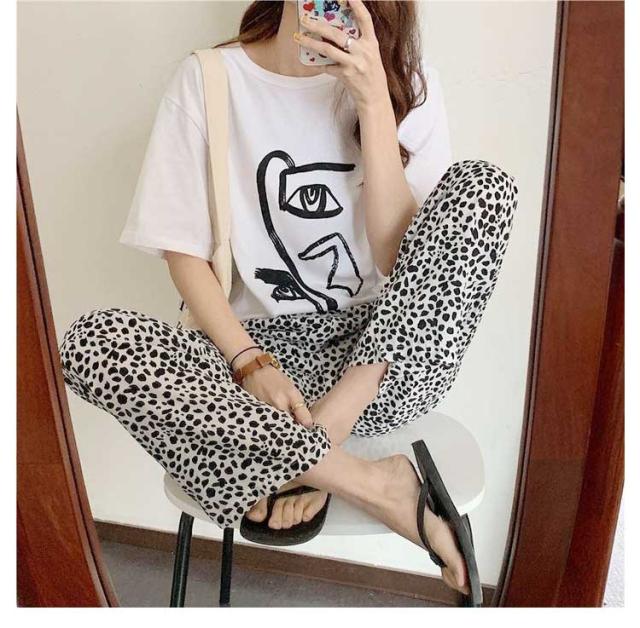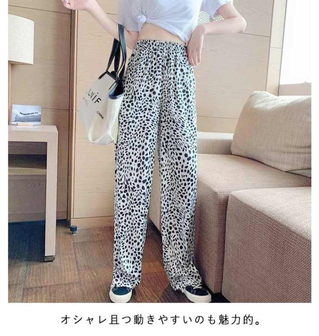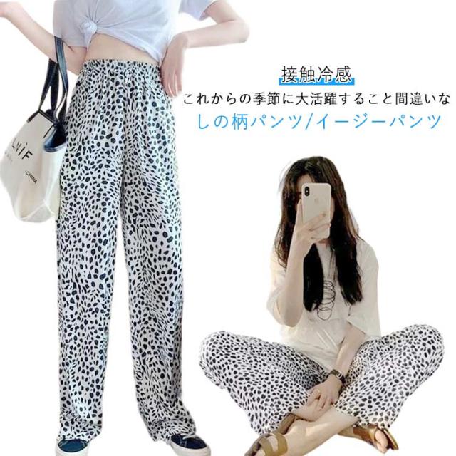 ボトムス レディース パンツ ワイドパンツ ヒョウ柄 ワイド ストレート イージーパンツ 夏用ひんやりパンツ ワイドパンツ ワイドパンツ プリントイージーパンツ 柄パンツ 総柄 リラックスパンツ 接触冷感 ひんやり 涼しい 薄手 夏用 ストレート 春服 プリント 夏服 夏