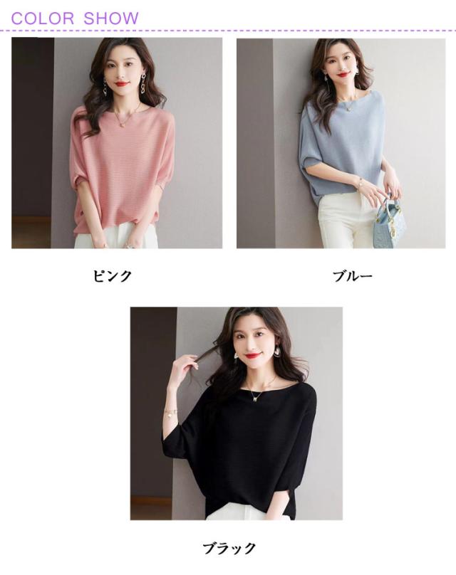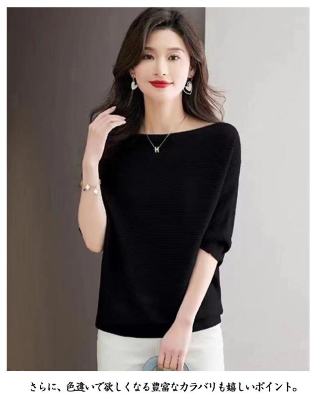 ボートネック サマーニット レディース 冷感 ニットTシャツ レディース Tシャツ ドルマンスリーブ ニットトップス セーター 半袖ニット カットソー ニットソー ゆったり 接触冷感 夏 半袖 きれいめ おしゃれ S M L XL 2XL