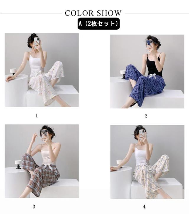 涼やか ステテコ 2枚セット 9分丈 総柄 薄手 ワイドパンツ ルームパンツ とろみ イージーパンツ 涼しい 夏パンツ 九分丈 ゆるパンツ わいい 部屋着 婦人 パジャマ ロングパンツ サラテロパンツ 春 夏 おしゃれ