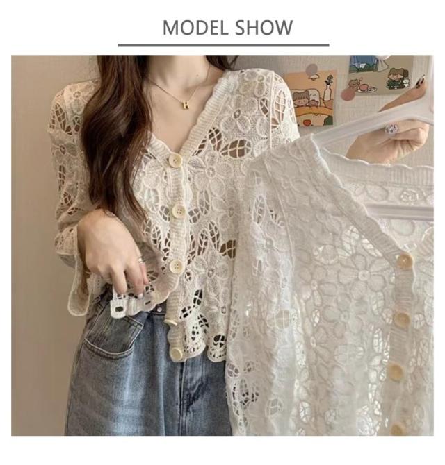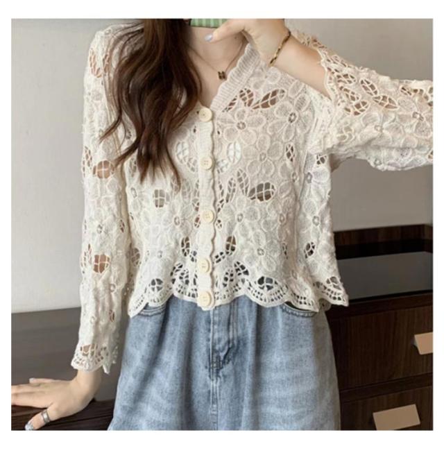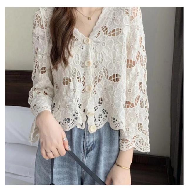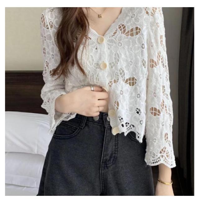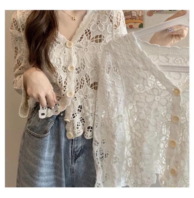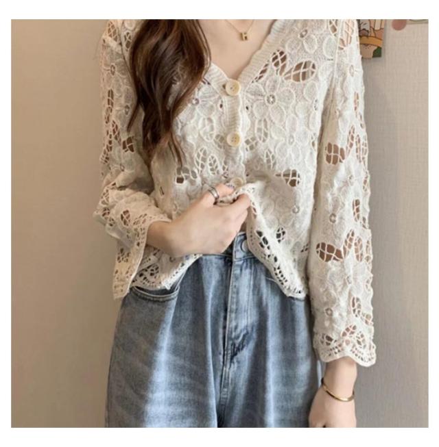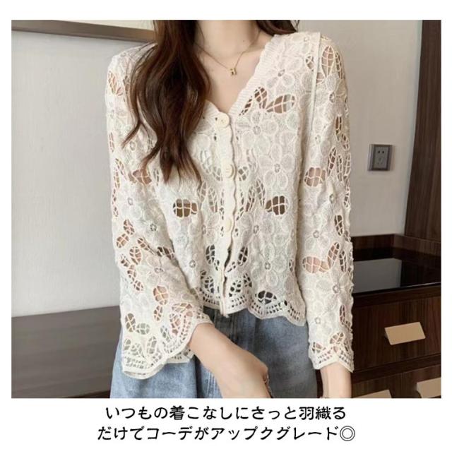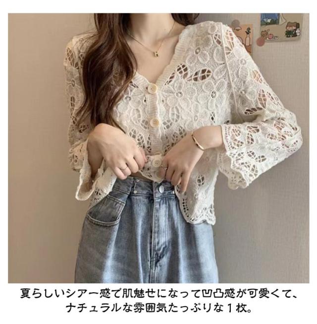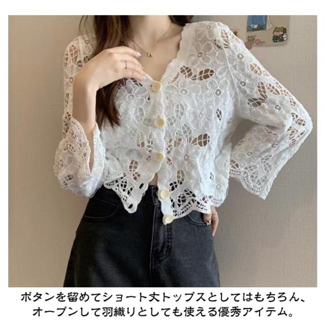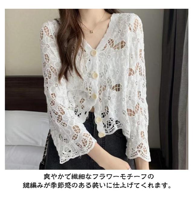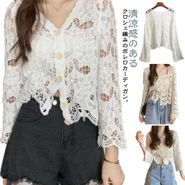 カーディガン レディース 刺繍 透かし編み 花柄 薄手 ニット ボレロ 冷房対策 春夏 羽織り ゆったり 体型カバー 七分袖 前開き 通気性 可愛い 女性らしい 大人 カジュアル お出掛け 夏