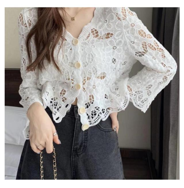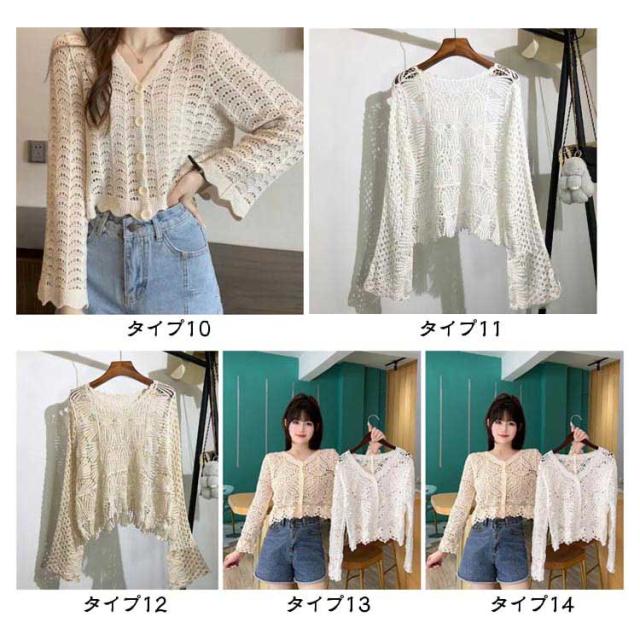 | 清涼感のあるクロシェ編みのボレロカーディガン。 爽やかで繊細なフラワーモチーフの鍵編みが季節感のある装いに仕上げてくれます。 いつもの着こなしにさっと羽織るだけでコーデがアップクグレード◎ ボタンを留めてショート丈トップスとしてはもちろん、オープンして羽織りとしても使える優秀アイテム。 夏らしいシアー感で肌魅せになって凹凸感が可愛くて、ナチュラルな雰囲気たっぷりな1枚。 | |