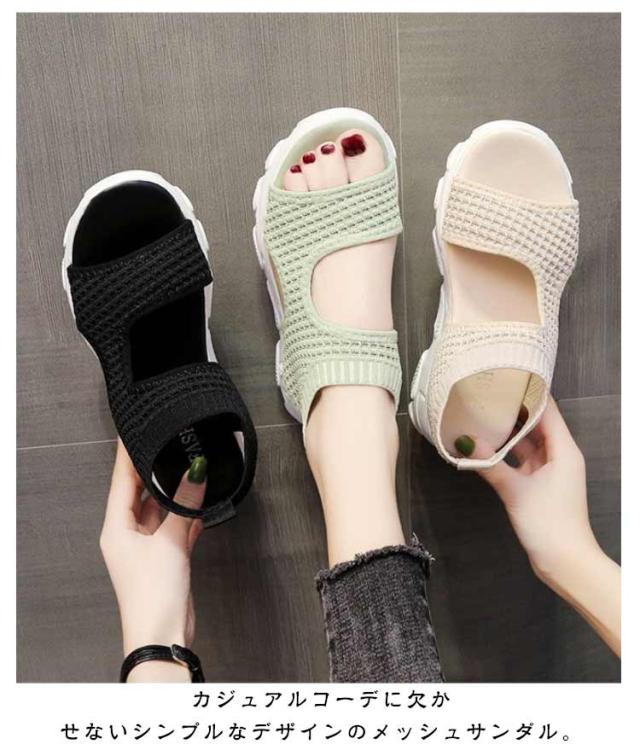 | カジュアルコーデに欠かせないシンプルなデザインのメッシュサンダル。 通気性の良いメッシュ素材に足長効果が期待できる厚底スタイル。 簡単に履けるお手軽さがありつつも。 かわいさ、大人っぽさも兼ね備えているのがの秘訣。 | |