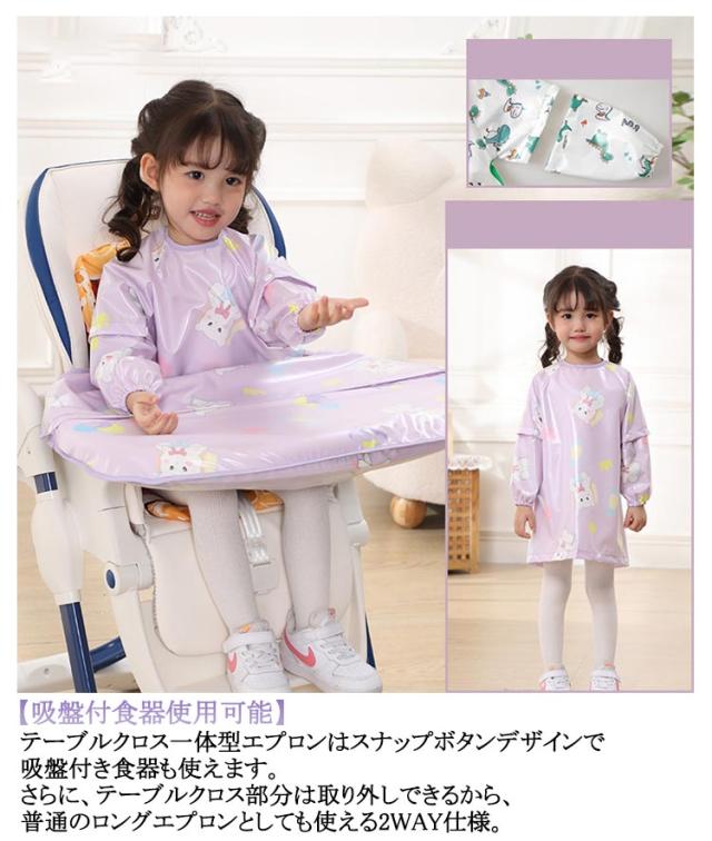 テーブルクロス一体型 お食事エプロン テーブルクロスカバー取り外し可能 2WAY 袖なし 赤ちゃん 長袖 エプロン ノースリーブ エプロン テーブル一体型 吸盤 お食い初め ロング ベビーエプロン お食事エプロン 送料無料