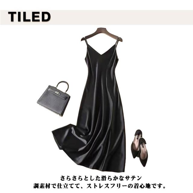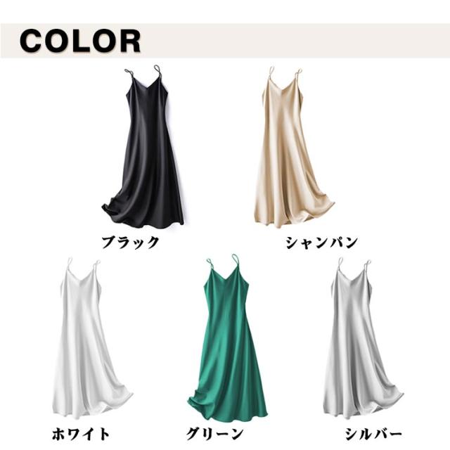 キャミソール ワンピース レディース サテン風 インナーワンピース ワンピース Vネック キャミワンピ 無地 ロング丈 ペチコート インナー キャミソール Aライン ノースリーブ 光沢 春 夏 着痩せ 大きいサイズ 重ね着 可愛い お洒落 通勤 OL オシャレ 送料無料
