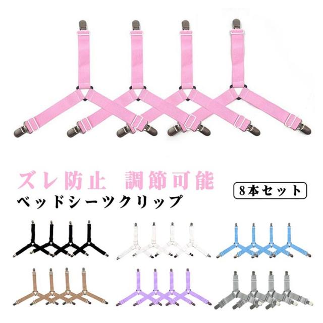 ベッドシーツクリップ ズレ防止 クリップ 8本セット 調節可能 三角ゴムバンド 伸縮 フラットシーツ 布団 ベッドシーツ ソファー 滑り止め 調整 固定 コーナー止め ズレ防止 シーツ固定 ホルダー 寝具 送料無料