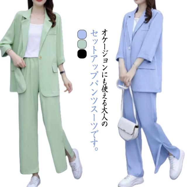 パンツスーツ セットアップ レディース スーツ 上下セット 3点セット インナー付き 7分袖 テーラードジャケット ワイドパンツ ビジネススーツ リクルートスーツ フォーマルスーツ セレモニースーツ 通勤 上品 面接 オフィス 入学式 春 夏 秋