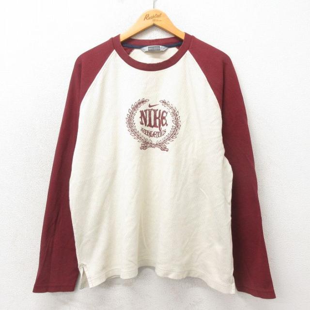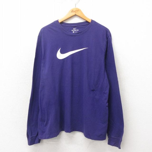 古着 ナイキ NIKE 長袖 ビンテージ Tシャツ メンズ 90年代 90s ビッグロゴ フロッキー 大きいサイズ クルーネック USA製 グレ 中古 古着