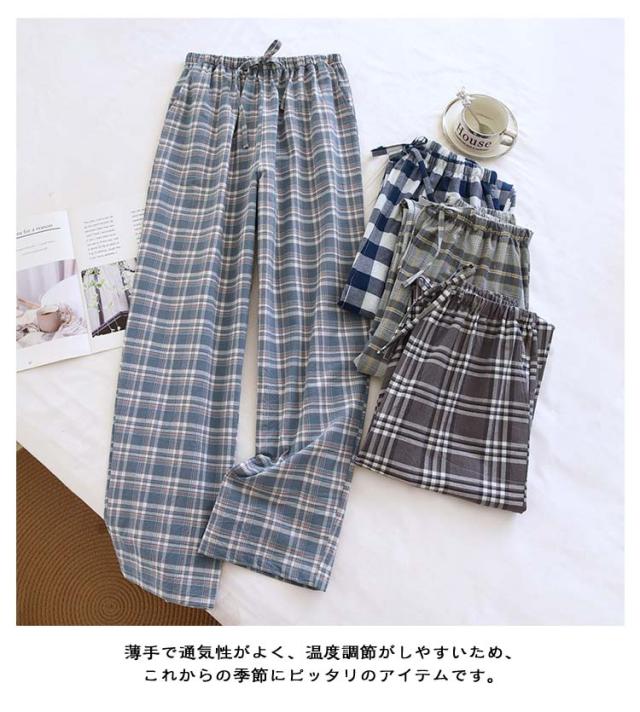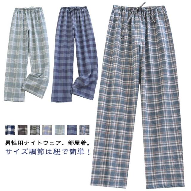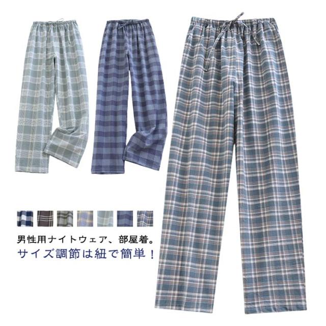 メンズ ルームパンツ パジャマ 春夏 ウエストゴム 部屋着 長ズボン 薄手 ボトムス ルームウェア ポケット 寝巻き ストレート チェック柄 ひも リラックス おうち時間 ゆったり秋 シンプル 薄手 ワンマイルウェア